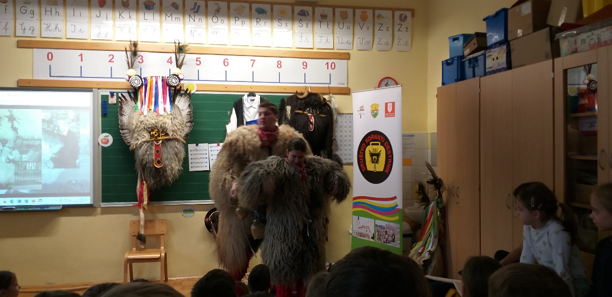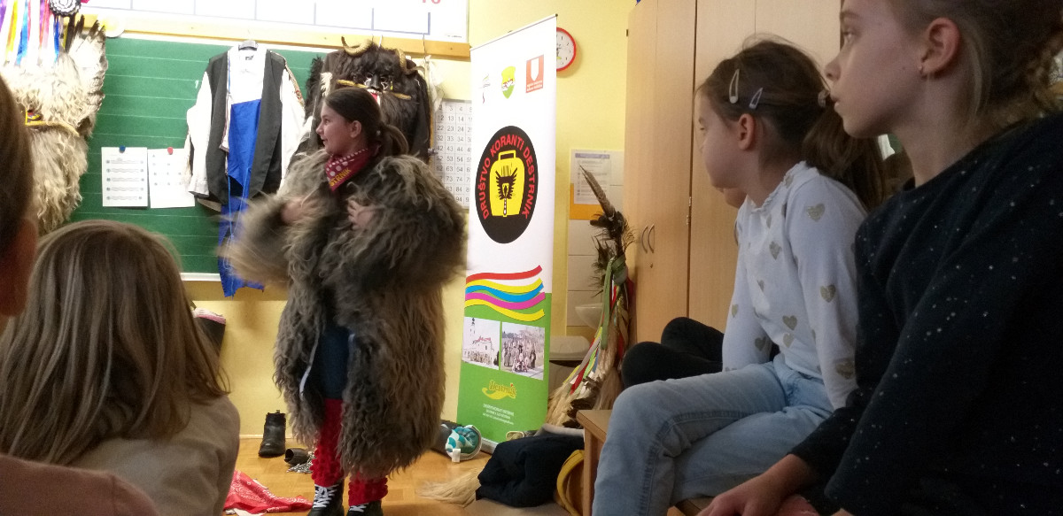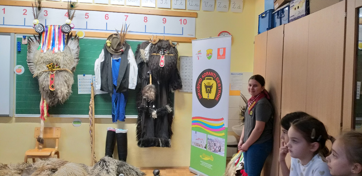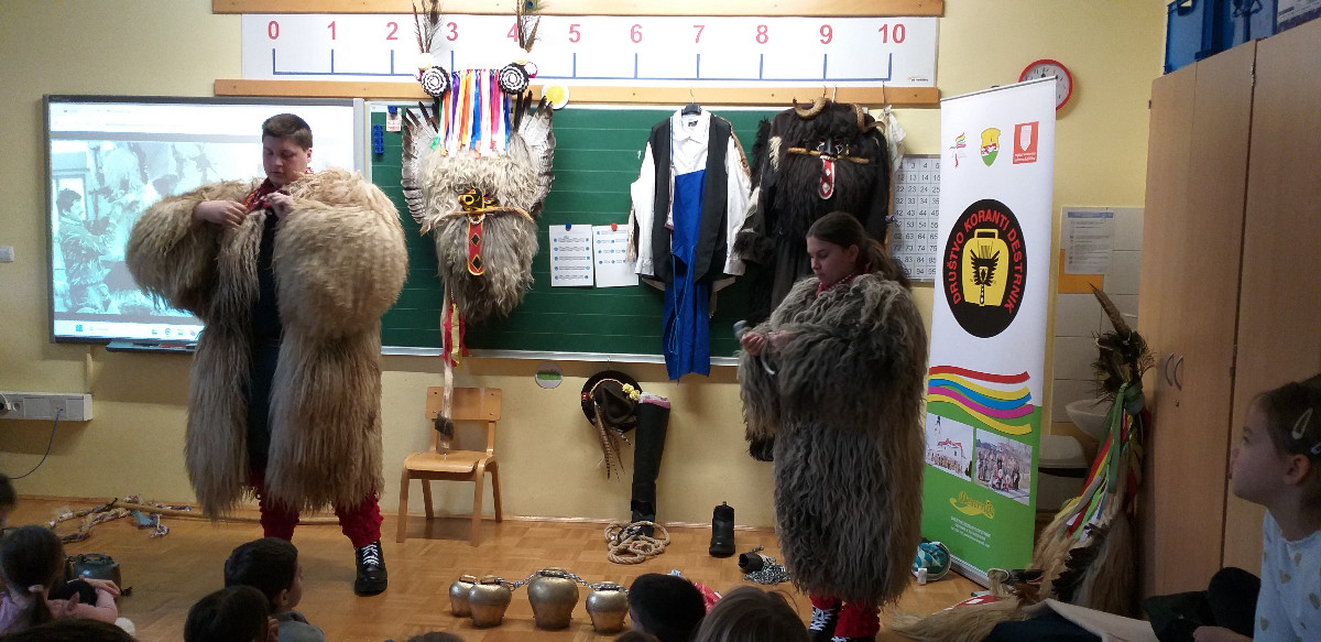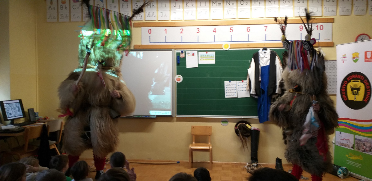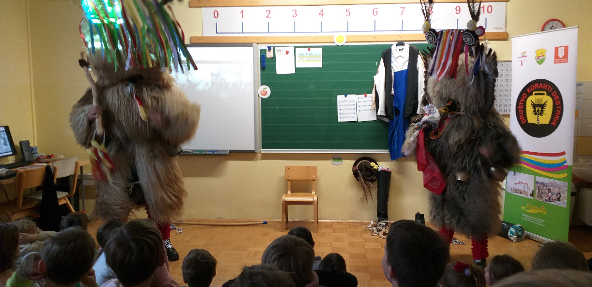 Danes sta člana Društva koranti Desternik za učence 1. vzgojno-izobraževalnega obdobja pripravila zanimivo in poučno predstavitev pustnih običajev ter avtohtonih pustnih likov, značilnih za naše okolje. Učenci so spoznali pustne like s Ptujskega in Dravskega polja, iz Haloz ter Slovenskih goric.
