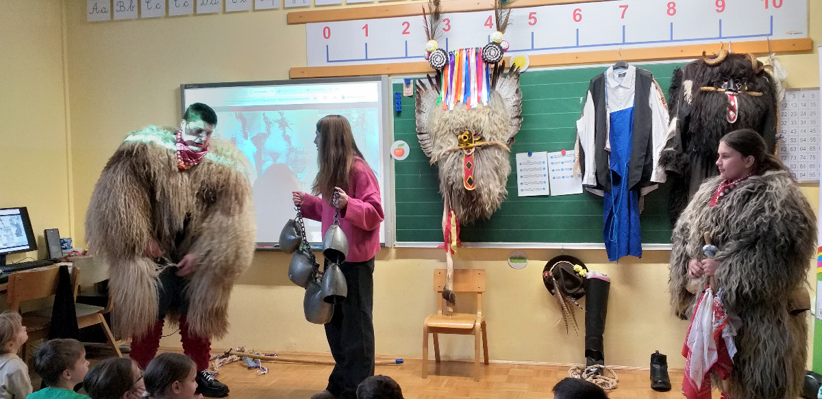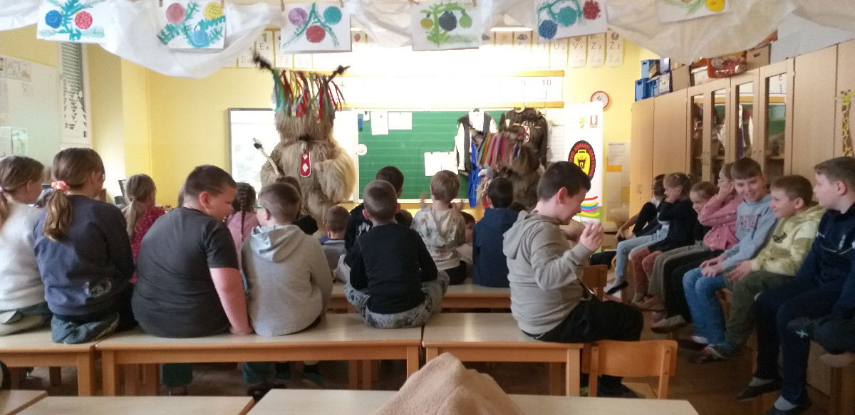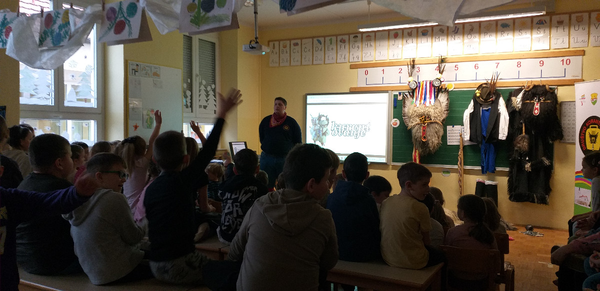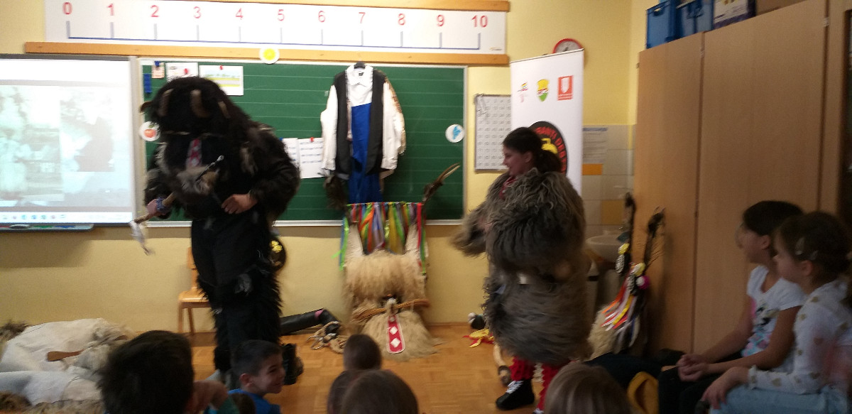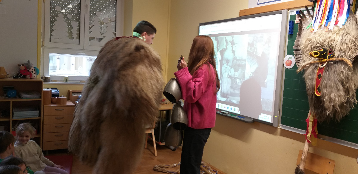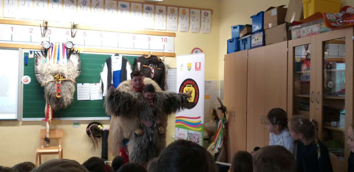 Danes sta člana Društva koranti Desternik za učence 1. vzgojno-izobraževalnega obdobja pripravila zanimivo in poučno predstavitev pustnih običajev ter avtohtonih pustnih likov, značilnih za naše okolje. Učenci so spoznali pustne like s Ptujskega in Dravskega polja, iz Haloz ter Slovenskih goric.