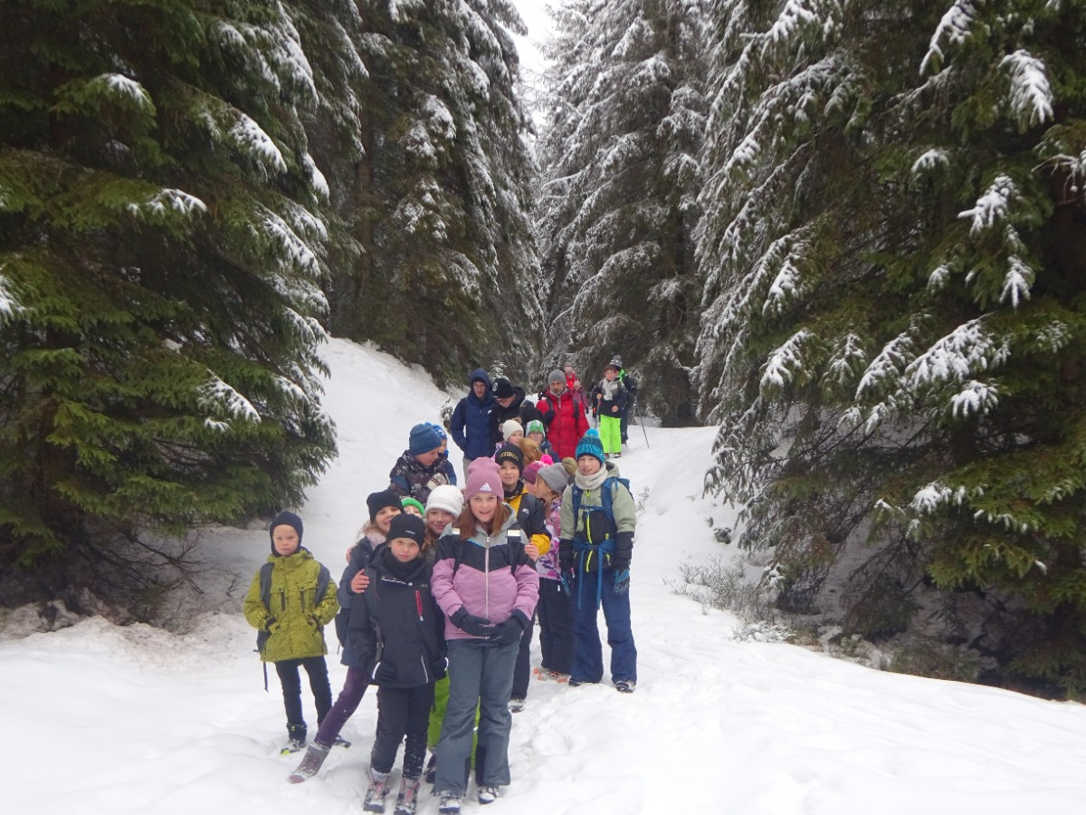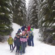 Mladi planinci na zimskem pohodu