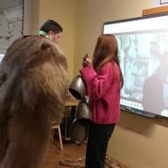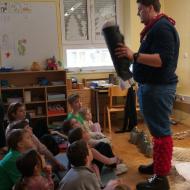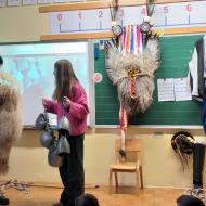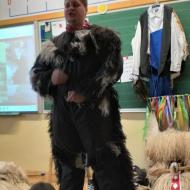 Za zelo nazorno in podrobno predstavitev likov ter z njimi povezanih običajev je poskrbel naš nekdanji učenec Jan Rebernik, pri čemer mu je z veseljem pomagala šestošolka Lana Dolinar. Učenci so z velikim zanimanjem spremljali predstavitev in spoznavali bogato pustno dediščino, med njo in po njej pa postavljali številna vprašanja. Z nestrpnostjo smo pričakovali tudi letošnjega princa ptujskega karnevala, ki se žal zaradi drugih obveznosti predstavitve ni mogel udeležiti.