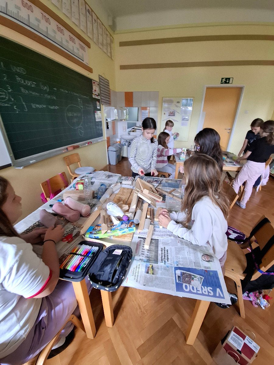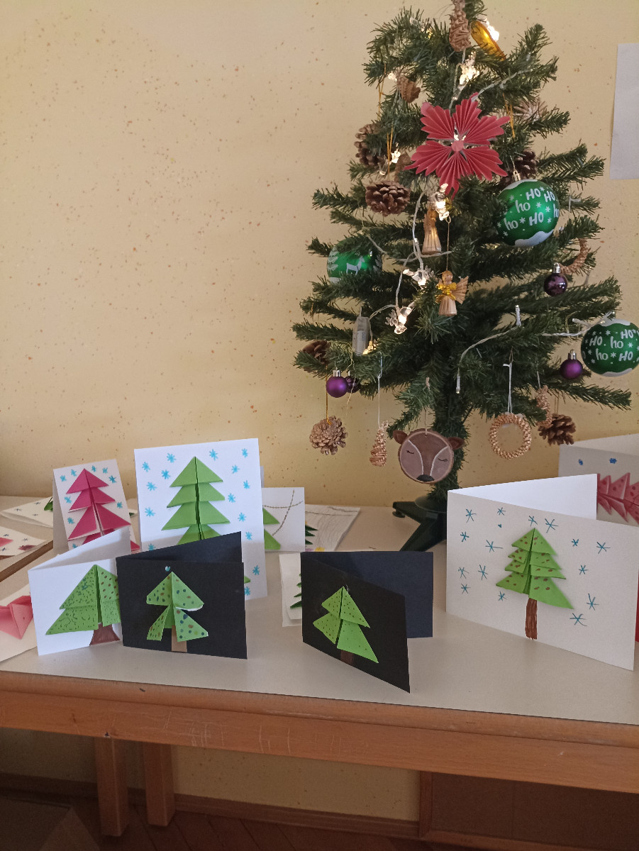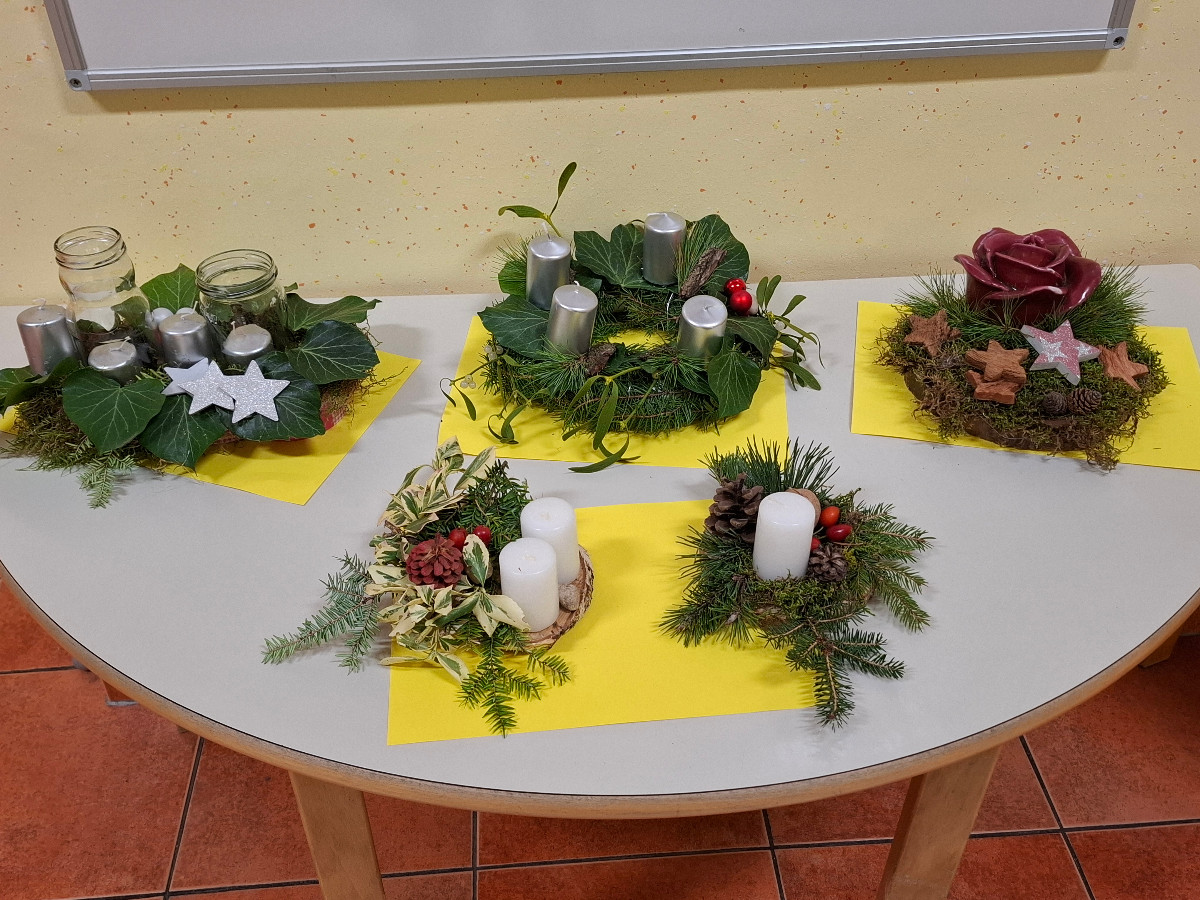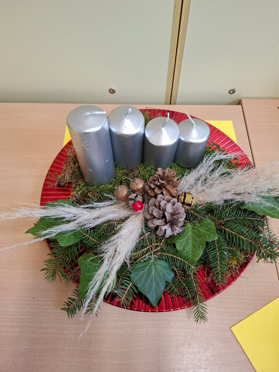V ponedeljek, 8. decembra, so se četrtošolci veselili božično novoletne ustvarjalnice. Različni podstavki, mah, smrekove in borove vejice, bršljan in storži ter različni pisani okraski so pričarali dekoracije, ki samo še čakajo, da bodo lahko krasile mize naših učencev. Da bo veseli december še bolj prazničen in čaroben, so slikali zimske motive in si okrasili učilnici. Nekateri so našli čas še za izdelavo domiselne novoletne voščilnice.