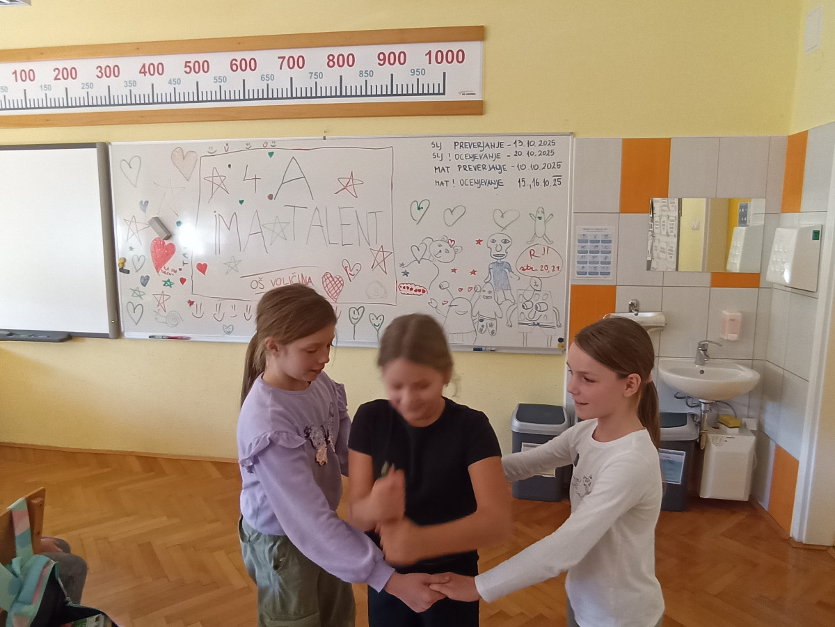 Pisana in razigrana jesen je barvala nepozabne trenutke tudi med četrtošolci. Ti so se preizkusili v skokih Mini Planice in uživali na napihljivih igralih, ki nam jih je v tednu otroka podarila Občina Lenart. Obiskal nas je tudi policist s PP Lenart, g. Boštjan Kaloh. Teoretična znanja o prometu so četrtošolci nadgradili še s preverjanjem spretnostne vožnje na prometem poligonu in z ustvarjanjem vozil z odpadnim materilom. Ob mnogih razigranih dejavnostih smo si pred zasluženimi počitnicami vzeli čas še za predstavitev razrednih talentov.