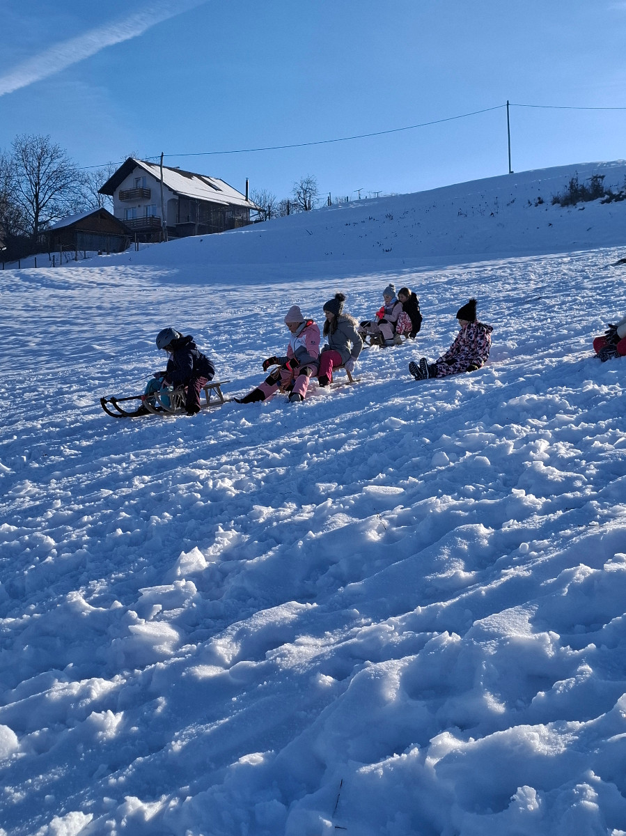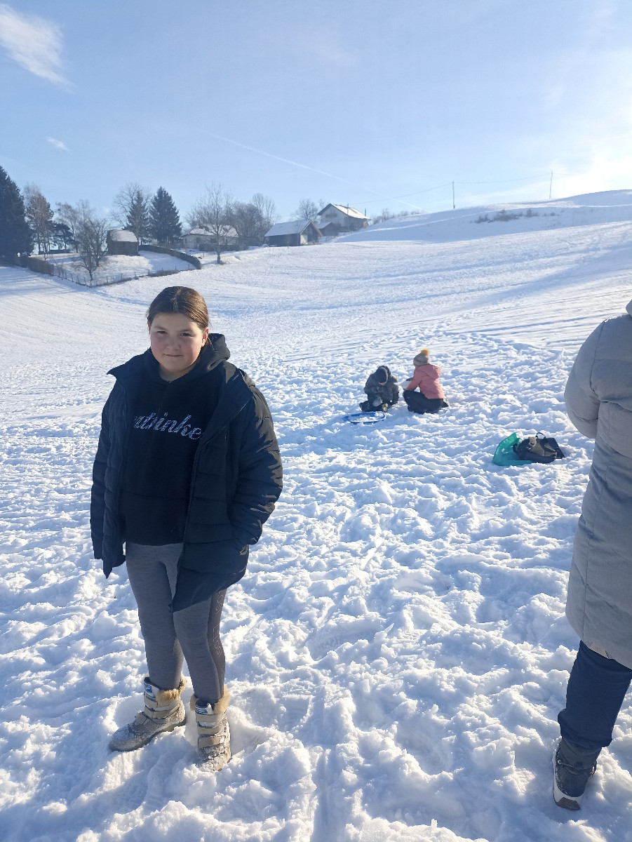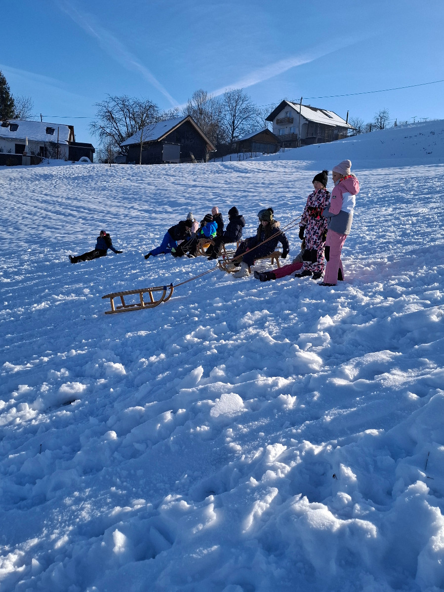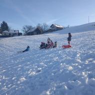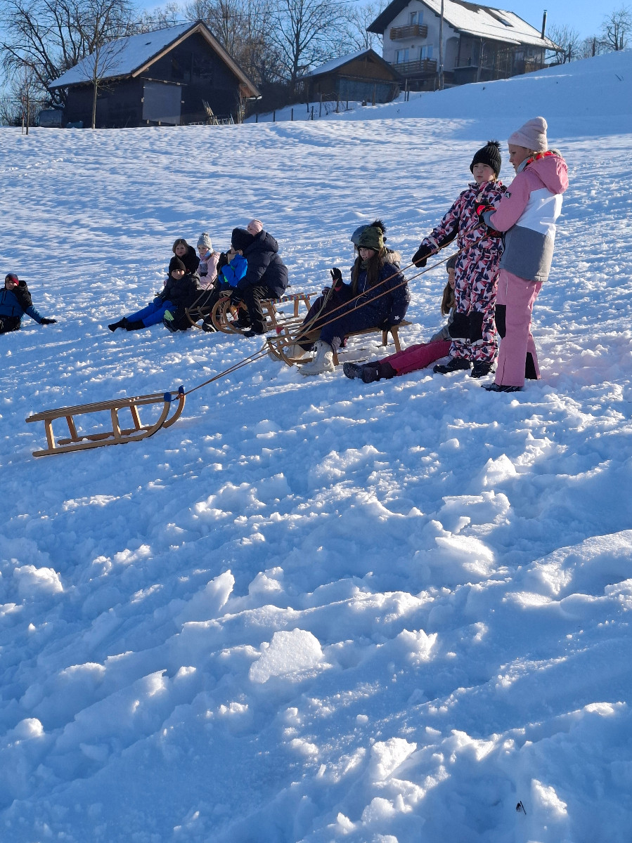 Snežna belina in vabljivi sončni žarki so tudi četrtošolce privabili na bele griče, kjer so si resnično dali duška. Radostni otroški glasovi, smeh in kriki navdušenja so se slišali daleč naokoli. Razigrani igri tudi nizke temperature in padci niso bili kos. Še več snega, prosimo! Zima je zakon.