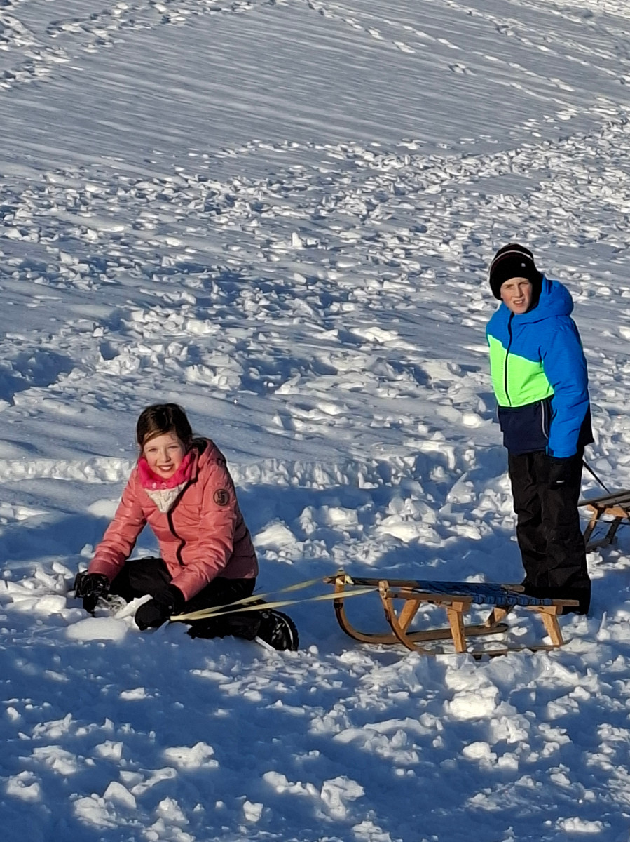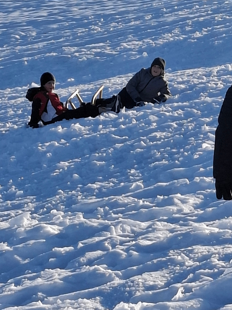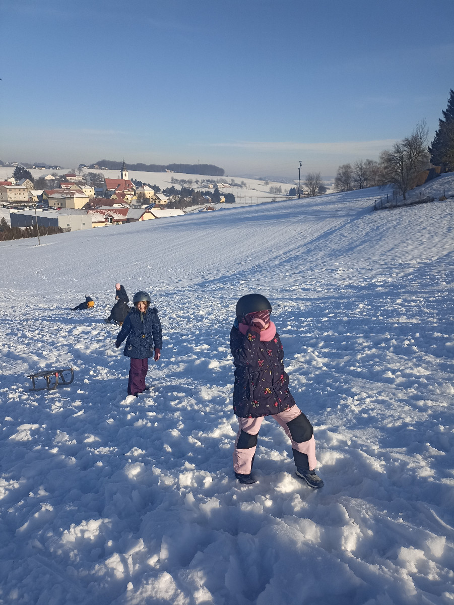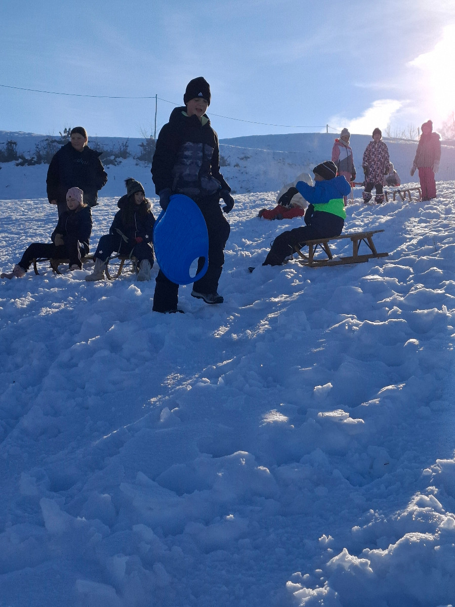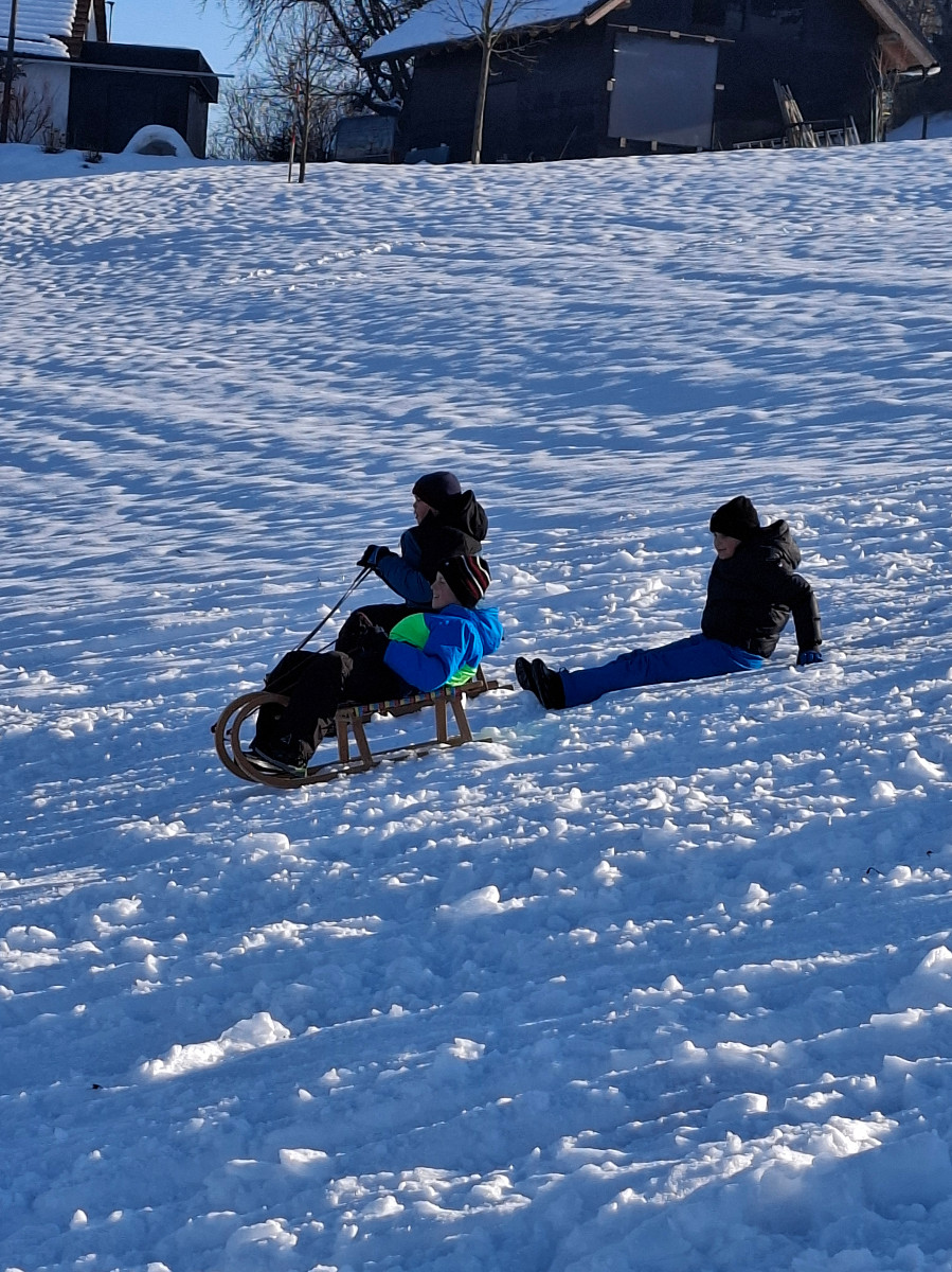 Snežna belina in vabljivi sončni žarki so tudi četrtošolce privabili na bele griče, kjer so si resnično dali duška. Radostni otroški glasovi, smeh in kriki navdušenja so se slišali daleč naokoli. Razigrani igri tudi nizke temperature in padci niso bili kos. Še več snega, prosimo! Zima je zakon.
